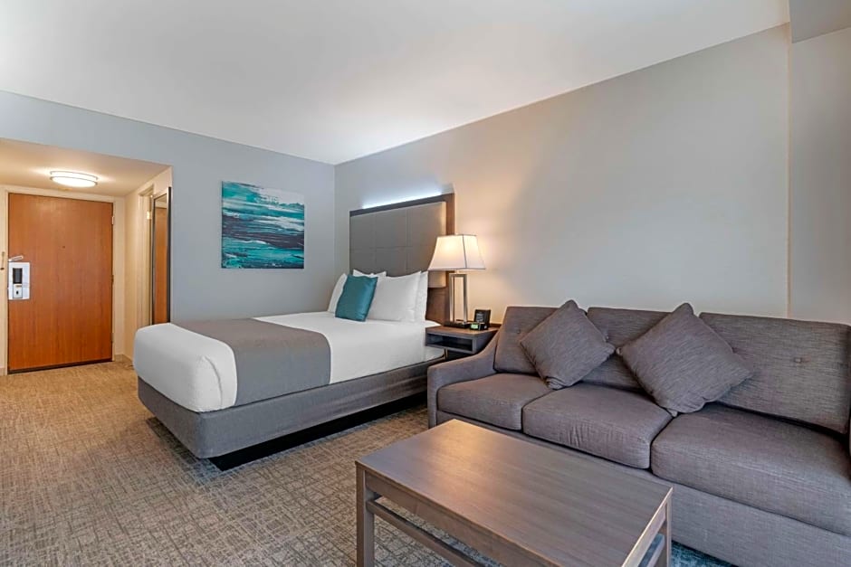 Now let's talk about the room types available at Best Western Plus Sands. The hotel offers a range of accommodations to suit different preferences and group sizes. From cozy double rooms to spacious suites, there is something for everyone. For couples or small families, the Premium King Room with a non-smoking option is ideal. It accommodates 2 adults and 2 children comfortably and features a king-size bed for a restful night's sleep. If you're traveling with a larger group, the Family Suite with a kitchenette and electric fireplace is perfect for accommodating 6 adults and 2 children. With a variety of room options available, you'll find the perfect space to relax and unwind during your stay at Best Western Plus Sands.
