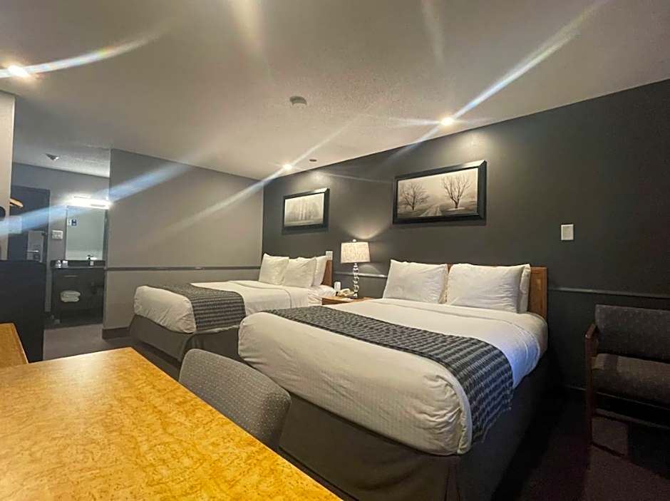The Travelodge by Wyndham Brandon offers a Two-Bedroom Queen Suite, which is a non-smoking suite with a room size of 301 sqft. It can accommodate 4 adults and 2 children with its two queen beds.