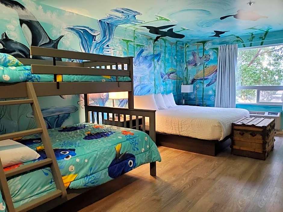 The hotel offers a variety of room types including King Rooms, One-Bedroom Efficiency King Rooms, Queen Rooms with Two Queen Beds, and Efficiency Queen Rooms with Two Queen Beds. All rooms are non-smoking and vary in size from 226 sqft to 570 sqft. The occupancy ranges from 3 adults and 2 children to 6 adults and 4 children depending on the room type. The bed sizes include King and Queen beds.