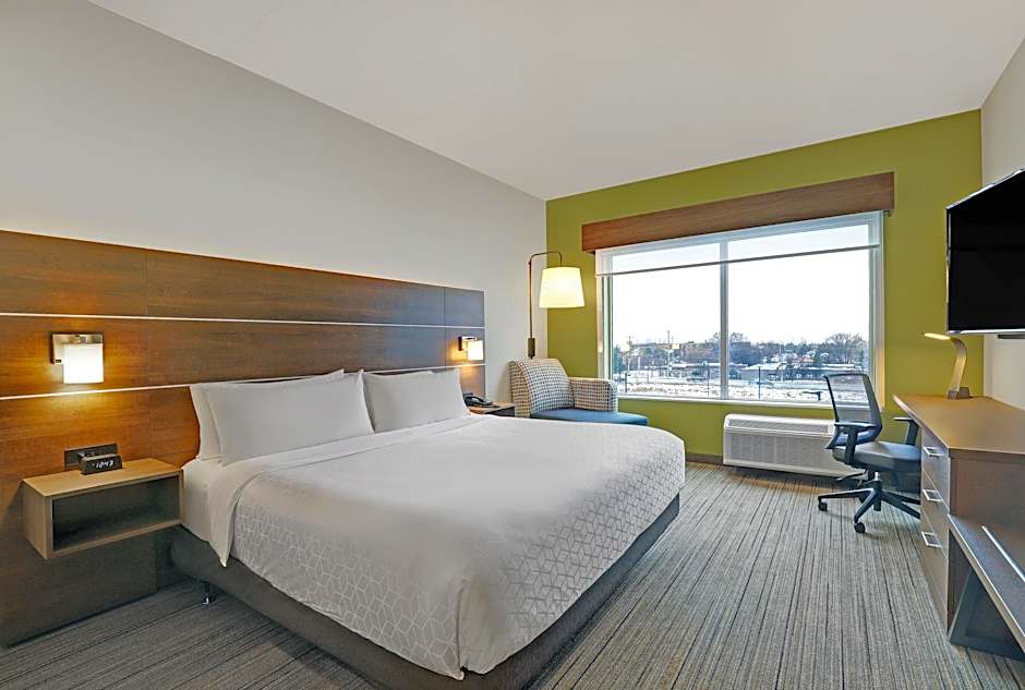 The Holiday Inn Express & Suites - Collingwood offers a range of room options including suites and double rooms. All rooms are non-smoking and have a room size of 301 sqft. Accommodations include king and queen size beds, with the option for rooms to accommodate 2 adults and 1 child or up to 4 adults and 3 children. Some rooms also have a sofa bed for additional sleeping arrangements.