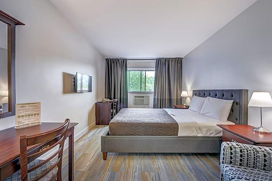 This studio features a small kitchenette and a living area with a sofa bed and cable TV. Bed type will vary based on availability upon check-in; guests will receive either a double, queen or king bed.