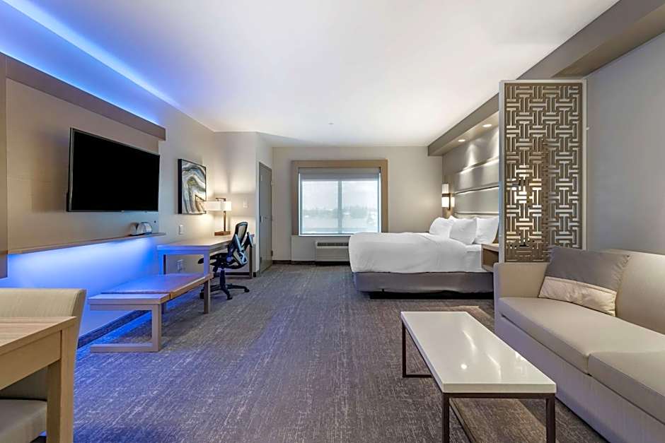 The hotel offers a variety of room types including Queen Rooms with Two Queen Beds, King Suites with Sofa Beds, King Suites with Kitchen, King Rooms, and accessible rooms with roll-in showers. Smoking is not allowed in any of the rooms. The rooms range in size from 301 square feet and can accommodate up to 4 adults and 3 children. The bed sizes vary from Queen size beds to King size beds.