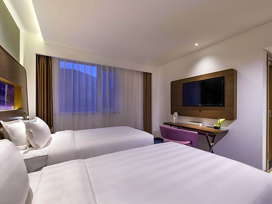 Offering free toiletries and bathrobes, this twin room includes a private bathroom with a hairdryer and slippers. The spacious air-conditioned twin room offers a flat-screen TV with cable channels, a mini-bar, a tea and coffee maker, executive lounge access as well as city views. The unit offers 2 beds.
