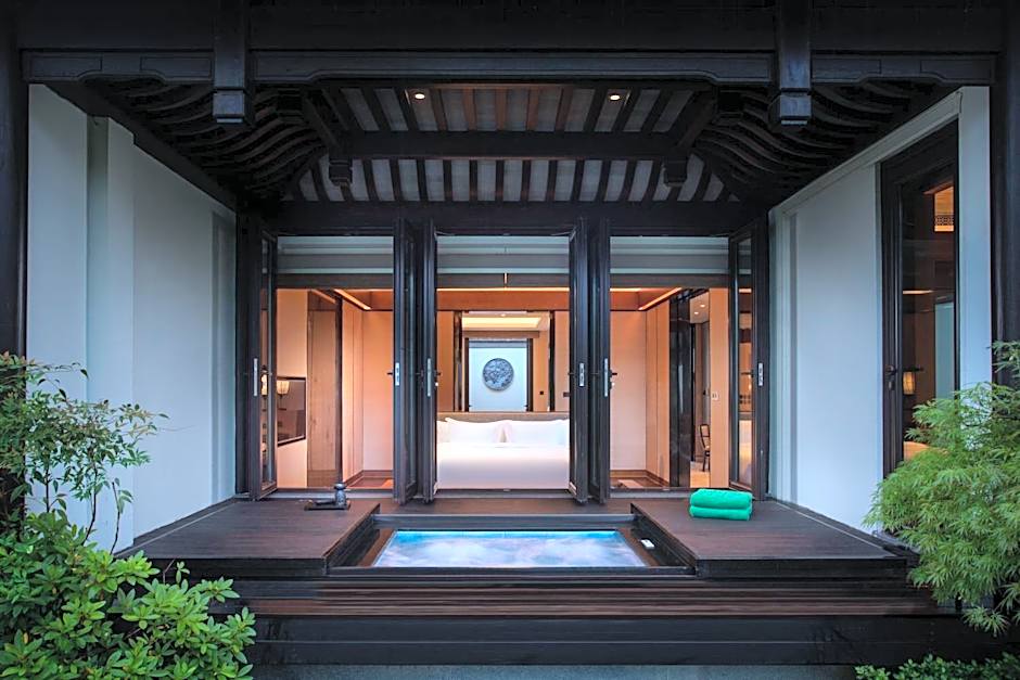 For a taste of true opulence, immerse yourself in the exceptional Sanctuary Pool Villas at . These exclusive villas offer a harmonious blend of modern amenities and traditional Chinese design elements, providing a tranquil sanctuary for guests seeking the epitome of luxury. Step out onto your private terrace to admire the breathtaking views of the surrounding mountains and feel all your worries melt away in this serene setting.