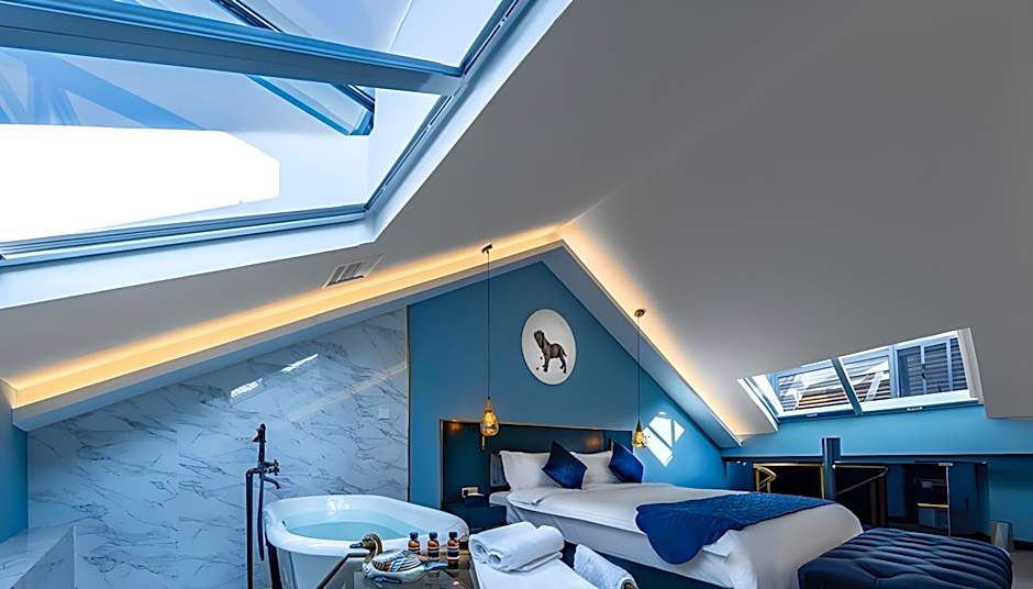 The Moon and Chalice Boutique Hotel offers a variety of room types, including the Presidential Suite, Deluxe Double Room, Double Room, Duplex Suite, Twin Room, Suite, and Deluxe Twin Room. Smoking is not allowed in any of the rooms. The rooms accommodate 2 adults and 1 child, and the bed sizes range from Queen size to Double and Twin beds. Room sizes range from 205 sqft to 646 sqft.