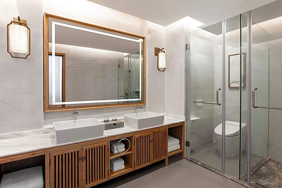Unwind and soak up the sun at the Sheraton Maoming Romantic Beach Resort with its stunning infinity pool that offers a breathtaking view of the surrounding area. Exclusively for adults, this rooftop pool is the perfect spot to relax and enjoy a refreshing swim. Whether you want to take a dip or simply lounge by the poolside, this serene setting is sure to elevate your stay at this luxurious beachfront resort.