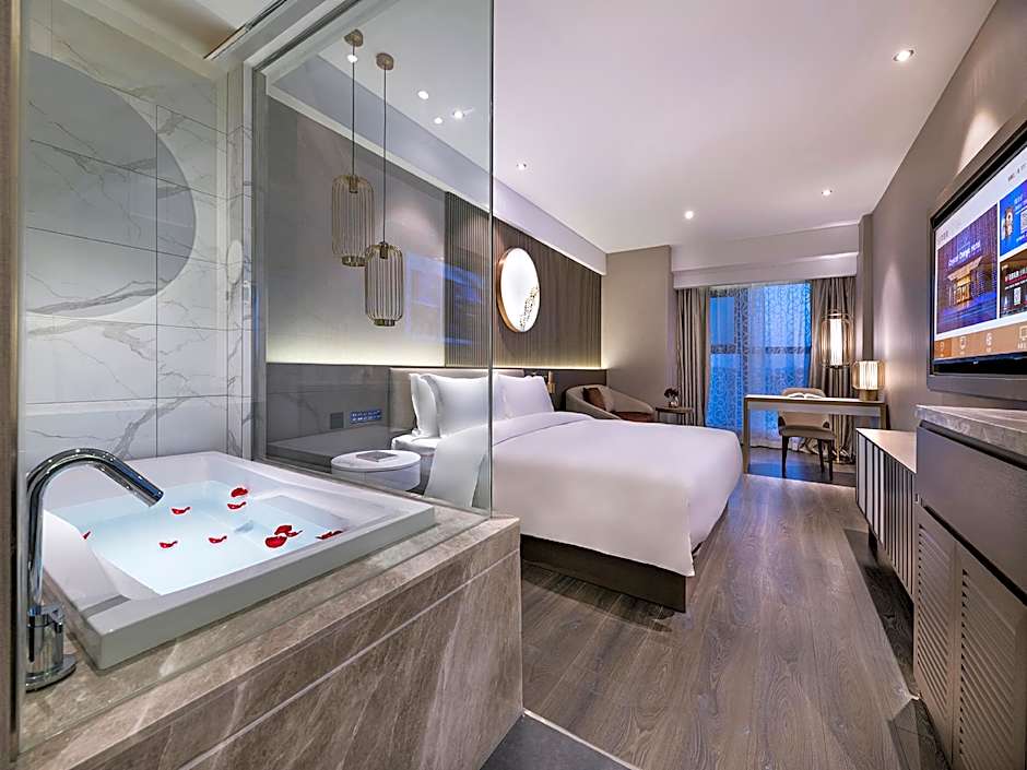 Located at 27f Block A Wanda Mall, this four-star hotel sits on the upper floors of a bustling mall complex in Nanjing. The mall-side setting pairs contemporary comfort with easy access to the energy of the area, making it a convenient base for a modern city visit.