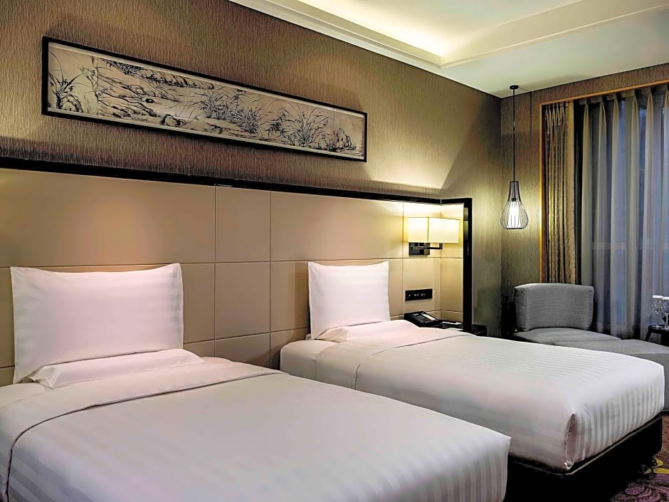 Executive Twin Room with City View is 377 square feet and includes 2 single beds 80-130 width.