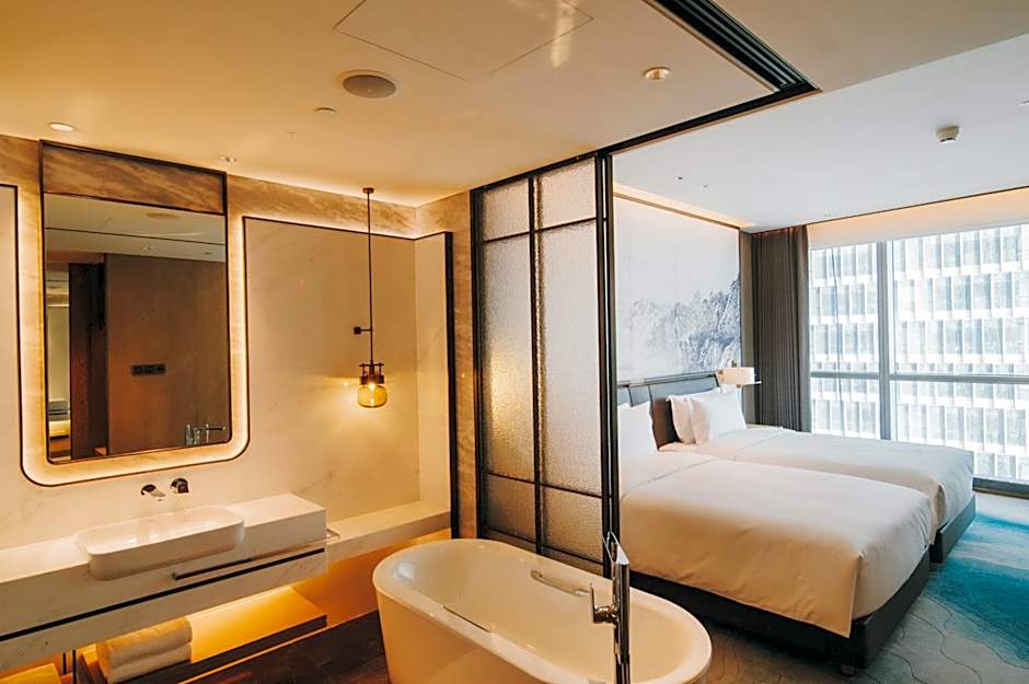 The hot tub is the standout feature of this twin room. The spacious air-conditioned twin room features a flat-screen TV, soundproof walls, a mini-bar, executive lounge access as well as sea views. The unit has 2 beds.