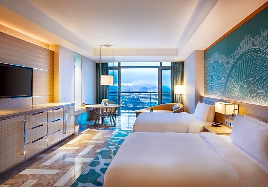 Boasting lavish and beautiful views of Haitang Bay, this presidential suite is a great combination of luxury and comfort. The suite is located on floors 51 and 52 with spacious living space and an interconnecting room. Guests can also enjoy exclusive butler service. The suite can accommodate up to 3 adults plus 1 child or 3 adults plus 2 children. This package includes: - Daily complimentary family cabana in Aqua venture or swimming pool - Complimentary breakfast - Exclusive fast-track ticket for the water park - Complimentary 1 hour massage per stay for 2 guests
