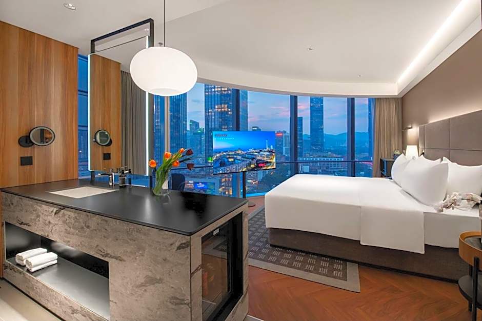 Welcome to the Intercity Hotel Futian Bin He Zhongzhou Bay, a stunning five-star oasis nestled in the vibrant city of Shenzhen! Located just 2,8mi from the bustling city center, this luxurious retreat offers a sophisticated blend of comfort and style. Starting at just $100 a night, you can indulge in everything this beautiful hotel has to offer while sitting at the ideal starting point for your Shenzhen adventure. Whether you're here for business or leisure, the contemporary ambiance and chic design are sure to impress.