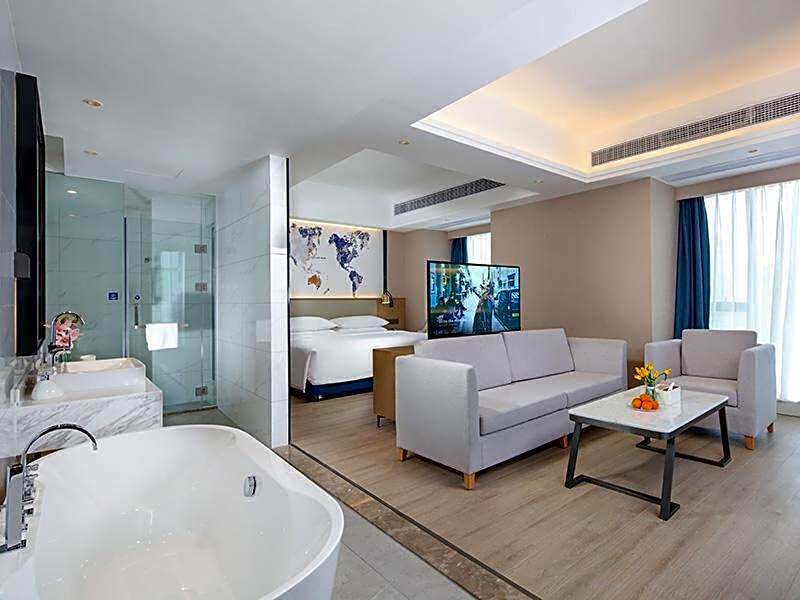 This suite comes with 1 living room, 1 separate bedroom and 1 bathroom with a bath and free toiletries. The air-conditioned suite features a flat-screen TV with cable channels, soundproof walls, a safe deposit box, an electric kettle as well as city views. The unit has 1 bed.
