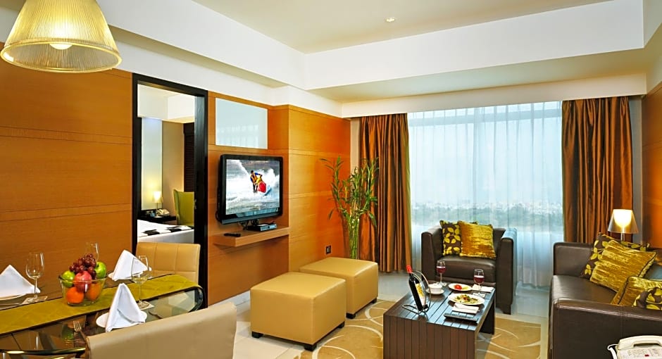 Room choices span several styles, including Suite (accommodates 2 adults, 2 children), Suite, Pool View (accommodates 2 adults), Studio Suite (accommodates 2 adults), Deluxe Corner (accommodates 2 adults), Superior Double Room (205 sqft, accommodates 2 adults, 1 child, with a Queen size bed), Suite, Queen (452 sqft, accommodates 2 adults, 1 child, with a King size bed), and Deluxe (248 sqft, accommodates 2 adults, 1 child, with a Queen size bed). Cash is accepted, along with Mastercard, Visa, American Express, and Maestro for a convenient checkout.