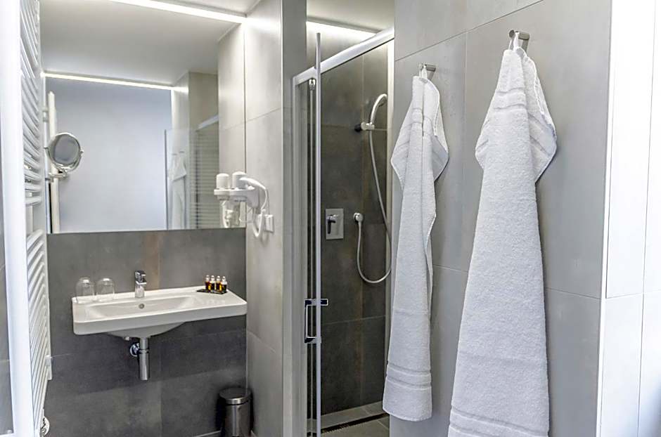 The spacious double room provides air conditioning, a tea and coffee maker, as well as a private bathroom featuring a bath and a shower. This double room features a wardrobe, a safe deposit box, a flat-screen TV with cable channels and city views. The unit offers 1 bed.