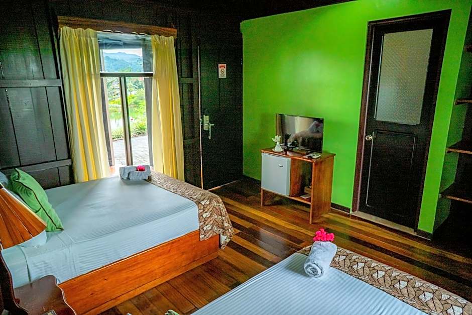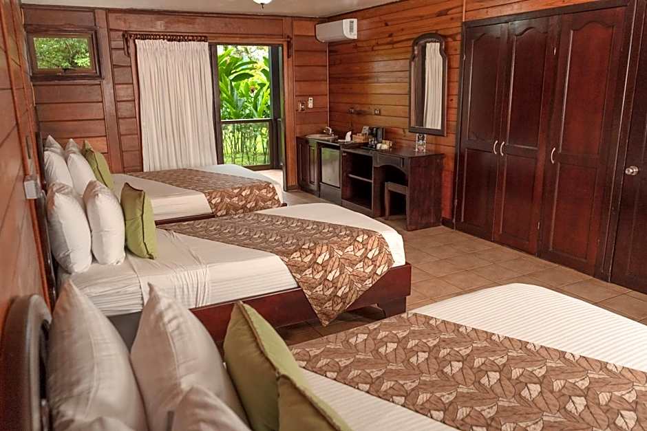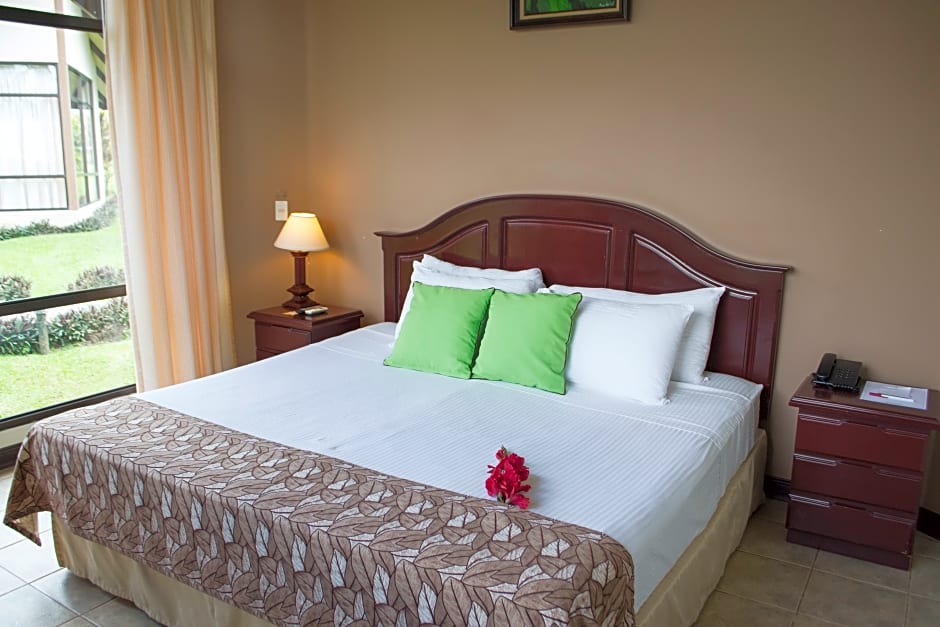 This attractive and tastefully furnished wooden bungalow has a terrace with views of the Arenal Volcano, a sloping thatched roof, beams and windows. It also features air conditioning, free Wi-Fi in the lobby & restaurant, mini-bar and bathroom.