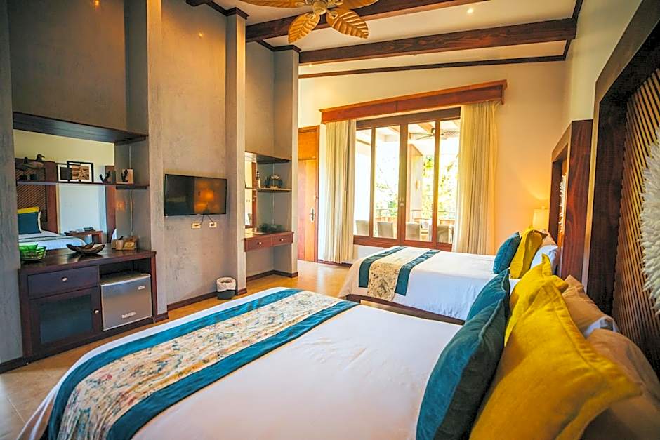 Decorated in earth tones, this spacious air-conditioned suite offers 2 queen-size beds, a living area with a sofa bed and a wooden terrace. It features a flat-screen TV, free WiFi, a mini-bar and coffee maker. The private bathroom includes a hairdryer.