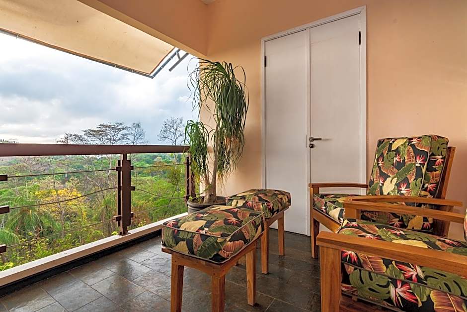 The Loft Suite located in the Clubhouse is a luxurious 800 square foot, 2-level unit consisted of of a dining and living area with one King size bed, one full size - and two twin size sofa beds, bathroom with stone shower, two sinks, separate toilet, closet and an upper loft unit connected via an interior staircase. The upper loft offers tropical Rainforest View. The lower unit offers direct access to the semi-private splash pools. The special touches include 2 Smart TV´s with Netflix, DVD player, natural wood and stone floors, mini-bar, central air conditioning, internet connectivity, 2 wireless telephones, safety box and top of the line toiletries.