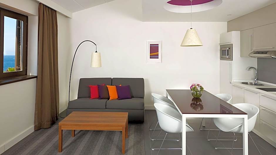 We loved the location and the facilities, especially the hotel facilities. Our room was bijou (apartment), and we asked for a fold down extra bed, being 2 friends, which was uncomfortable, but reception was notified and gave us an extra mattress. We ate mainly in Olivos restaurant in the evening, lovely food and service,. The great buffet breakfast in the morning, was fabulous and well worth €17 euros each, because we didn't opt for inc breakfast. Everywhere we went, the staff were extremely helpful, friendly and polite The toiletries were a great bonus, great bathroom and shower! Shop, pharmacy and gift shop onsite. Also a couple of clothes wear and beachwear shops. Lovely sitting in the outside bar area of the hotel at night, with fabulous views