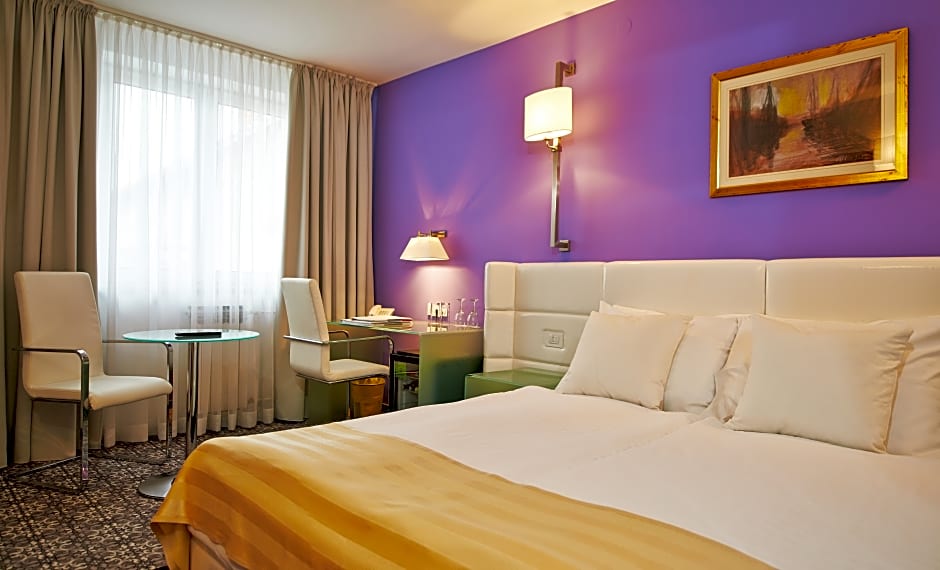 This individually designed room features a modern-style interior, glass working desk, anatomical chair and extra club table with chairs, Biopur anatomic mattresses, elegant lighting and luxurious design patterns in Hotel Phenix colors. The private bathroom is fitted with a bath or a shower and comes with Pascal Morabito cosmetics. Guests staying in this room get to use the Spa & Wellness Center free of charge and an additional 20% discount for a massage of their choice. Other amenities: • Individual air conditioning • Flat-screen satellite TV • Mini-bar • Electronic safe • Luggage rack • Electronic door locking system • Smoke detector and SOS system