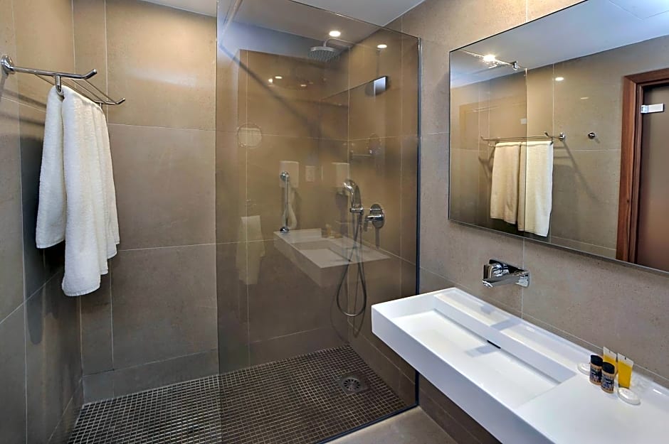 At Nelia Beach Hotel & Spa, guests can choose between Deluxe Sea View Rooms with Indoor/Outdoor Spa Bath or Luxury Suites with Sea View & Luxury Spa Bath. Both room types are non-smoking, accommodate 2 adults, and feature a queen-size bed. Room sizes range from 269 to 323 square feet.