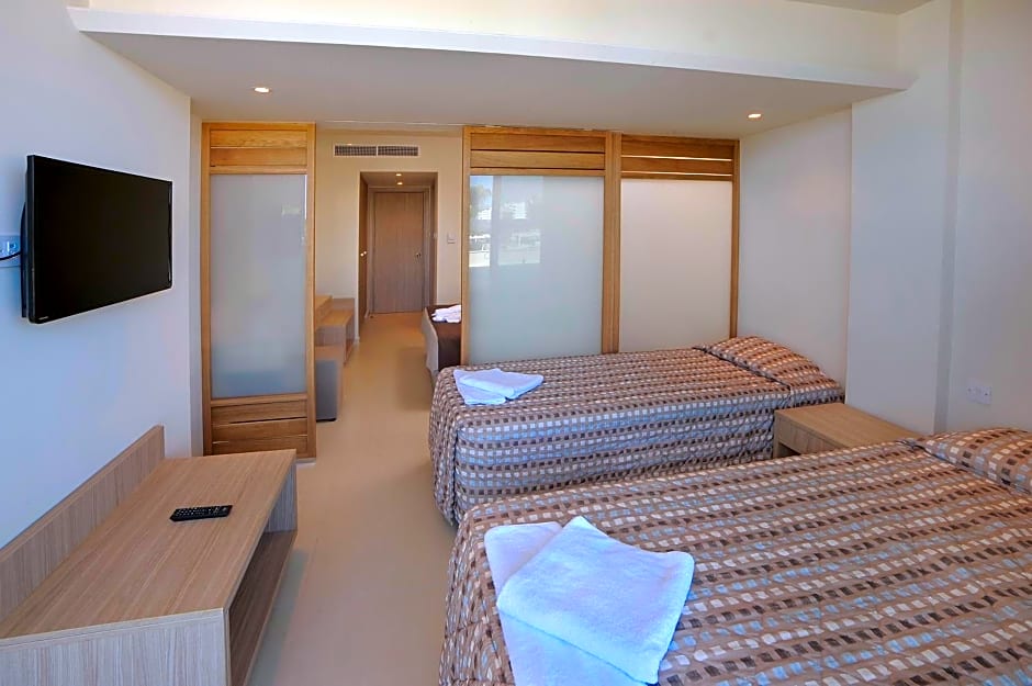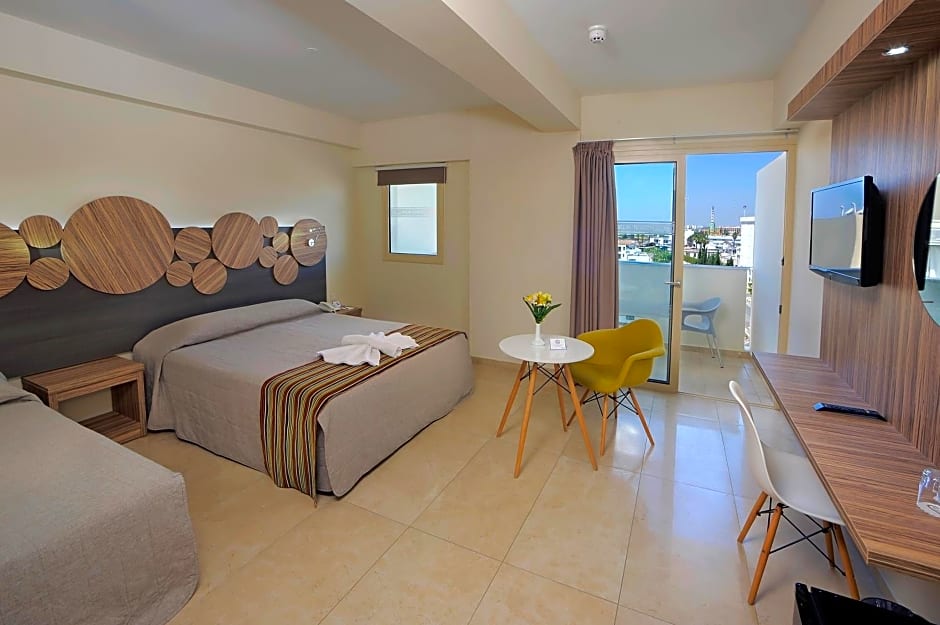 Guest rooms feature air conditioning, balconies, and views—whether garden or sea—offering a breezy base after days on the sand. Practical touches include a 24-hour front desk, non-smoking rooms, an elevator, and free toiletries, along with private parking for added convenience. With the beach at the doorstep and Ayia Napa’s lively charm within reach, this seaside stay blends coastal bliss with easy, everyday comforts.