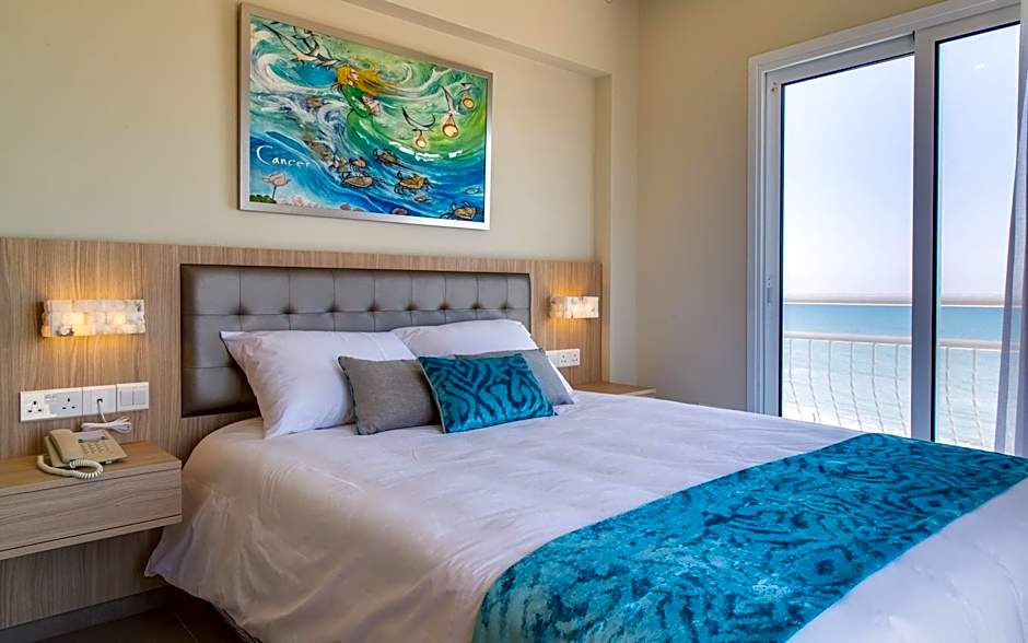 The Zodiac Hotel Apartments offers three types of rooms: Studio with Sea View, Studio with Side Sea View, and One-Bedroom Apartment with Sea View. Smoking is not allowed in any of the rooms. The Studio rooms accommodate 2 adults and have either 2 twin beds or 1 queen size bed. The One-Bedroom Apartment accommodates 3 adults and has a sofa bed in addition to a queen size bed.