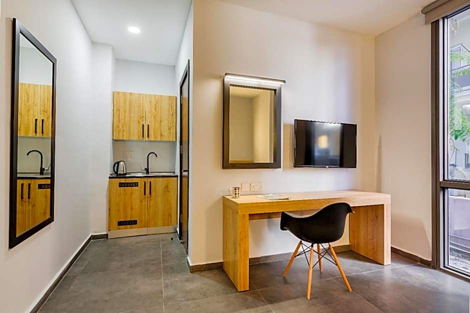 Offering free toiletries, this double room includes a private bathroom with a shower, a hairdryer and slippers. The fully equipped kitchenette features a refrigerator, kitchenware and a microwave. The spacious air-conditioned double room offers a flat-screen TV with satellite channels, soundproof walls, a tea and coffee maker, a seating area as well as garden views.