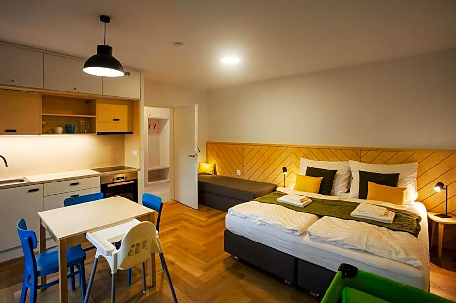 Located at Horečky in Frenštát pod Radhoštěm, about from the city center, the apart-hotel sits in a garden-facing setting. Free on-site parking and free Wifi help keep plans flexible, while a terrace, balcony, and garden views invite relaxed mornings and sunset strolls. A kitchen or kitchenette supports flexible stays, and upper floors are reachable by elevator. Only cash is accepted as payment.