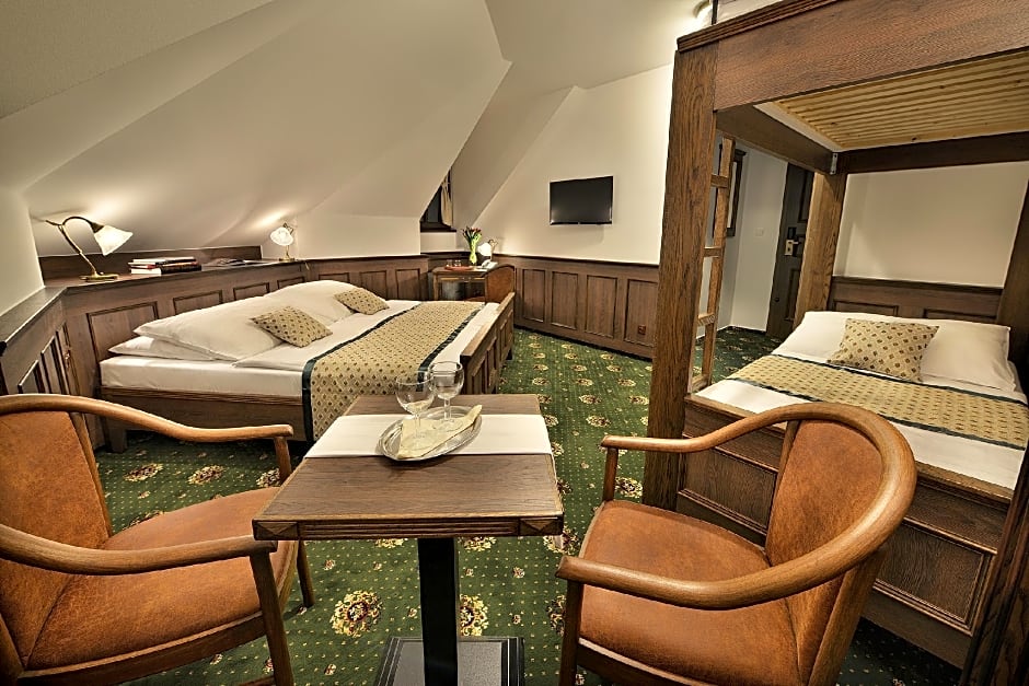 Hotel Podhrad offers a variety of rooms including Suites, Triple, Double, Single, and Family rooms. Occupancy ranges from accommodating 1 adult in the Superior Single Room to 4 adults and 2 children in the Suite and Suite - Annex rooms. Smoking is not allowed in any of the rooms. Bed options vary from Queen size to Twin beds, and the room sizes range from 215 sqft to 431 sqft.