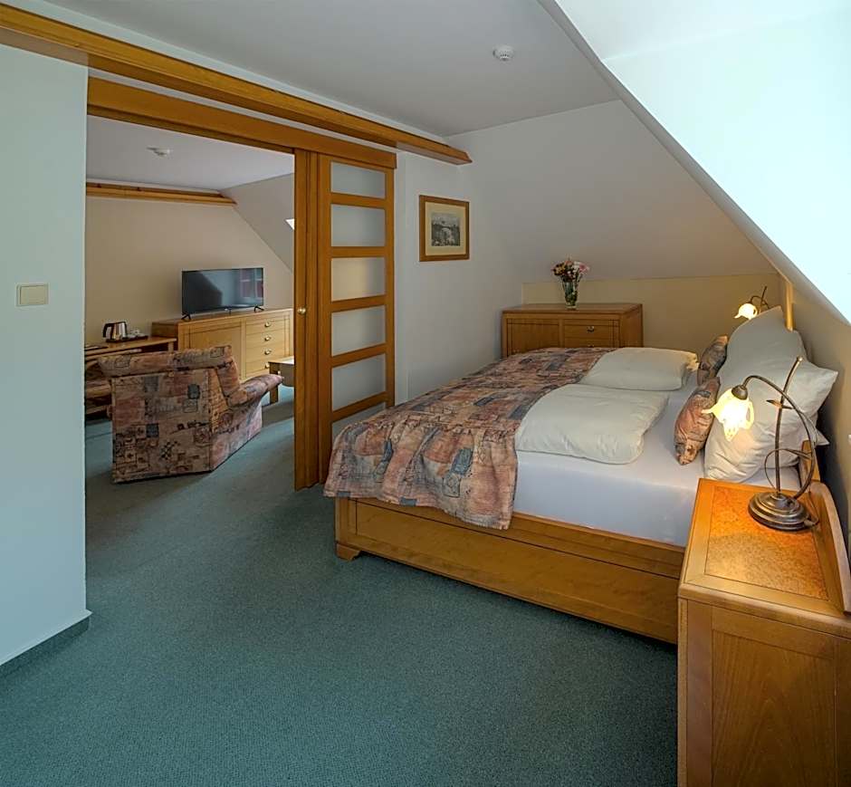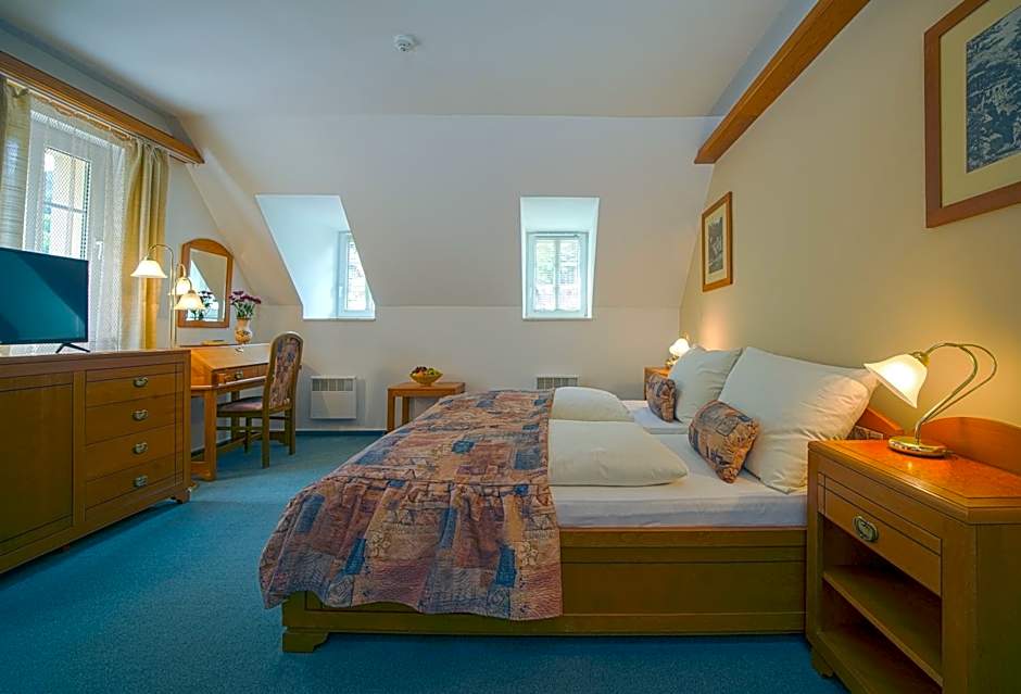 These rooms are spacious and offer views of Kamenice River with private bathroom, mini-bar and TV.