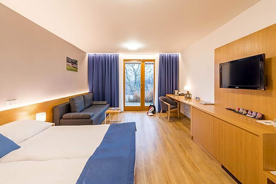 The spacious double room provides air conditioning, a mini-bar, a terrace with garden views as well as a private bathroom featuring a shower.
