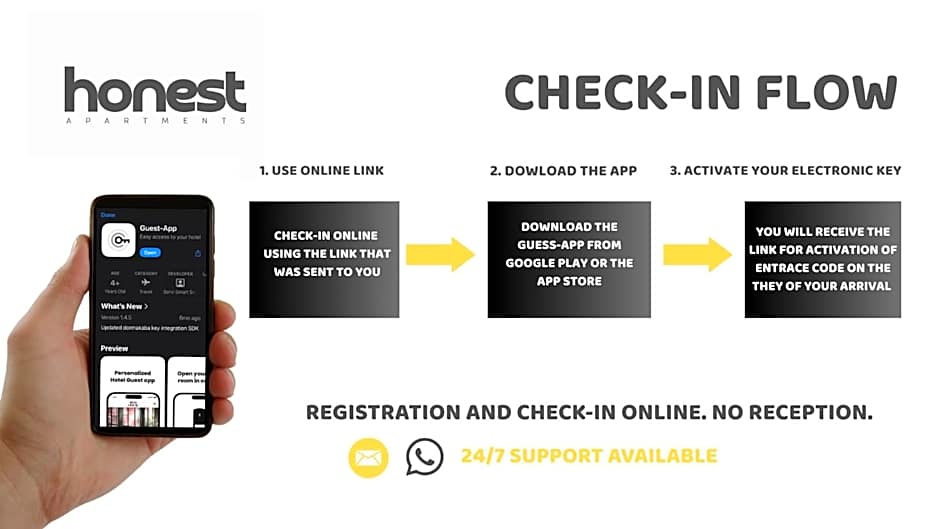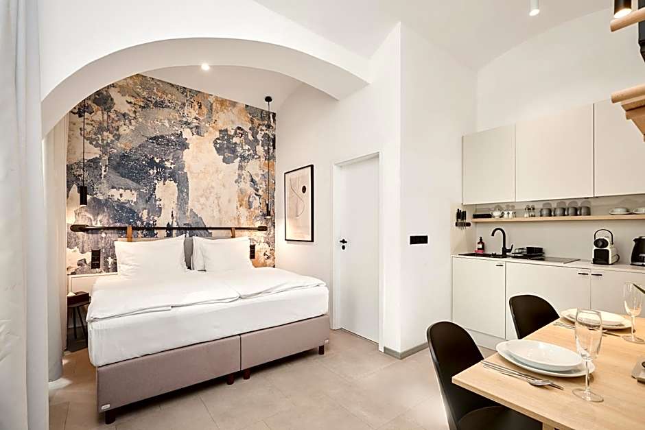 HONEST Karlin offers a rich mix of studios and apartments for flexible stays. The Studio Loft is about 237 sqft and sleeps 2 adults and 1 child, with a queen-size bed; the Studio Loft Attic, Double is 248 sqft and also accommodates 2 adults and 1 child with a double bed. For more space, the Superior Studio, Double includes a queen-size bed, while the Comfort Apartment spans around 312 sqft with a queen-size bed.
