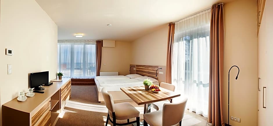 After a day of activities, guests can dine at Restaurace #1, which offers a family-friendly and modern ambiance. The restaurant serves local and European cuisine.