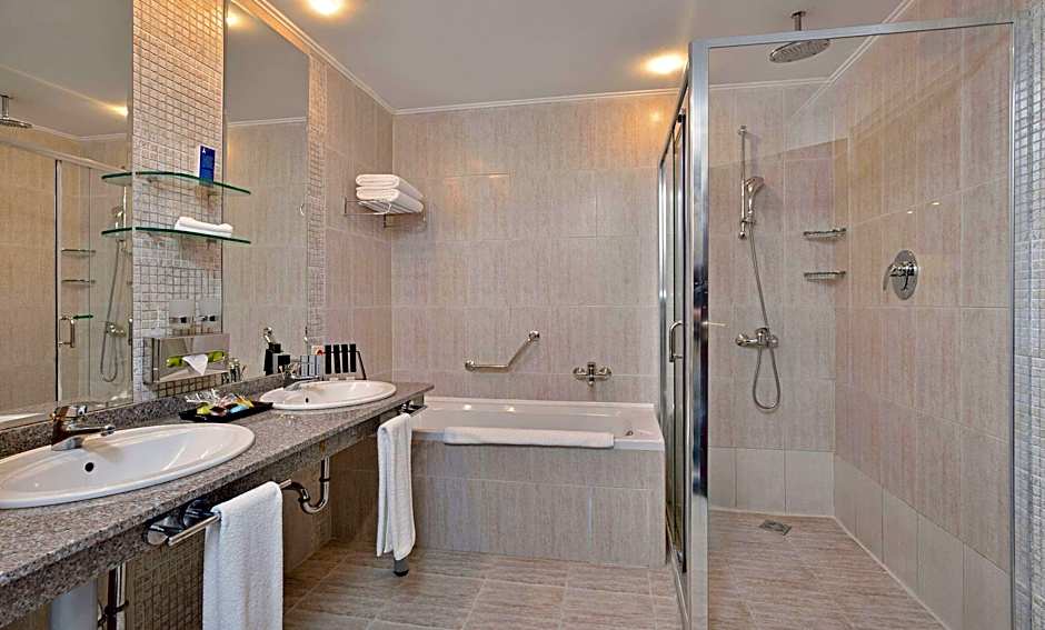 Velkommen til det luksuriøse Melia Grand Hermitage All Inclusive, et 5-stjernet hotel beliggende i den betagende by Zlatni Pyasatsi, Bulgarien. Kun en kort 0,4mi afstand fra byens centrum er dette hotel den perfekte destination for rejsende, der søger en kombination af byliv og afslapning ved stranden. Med et uberørt privat strandområde, både indendørs og udendørs swimmingpools samt vandsportsfaciliteter på stedet kan gæsterne nyde den ultimative strandferie.