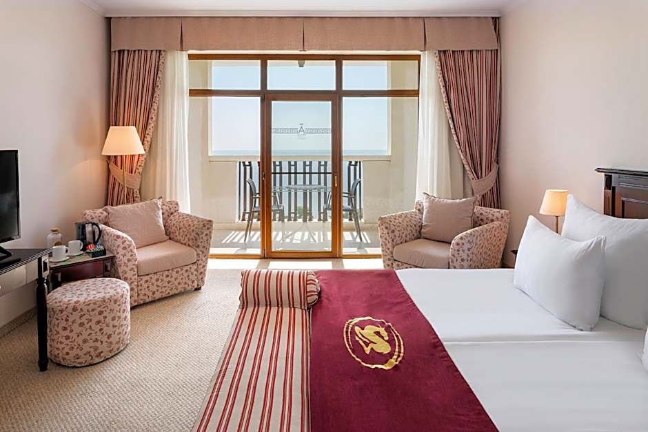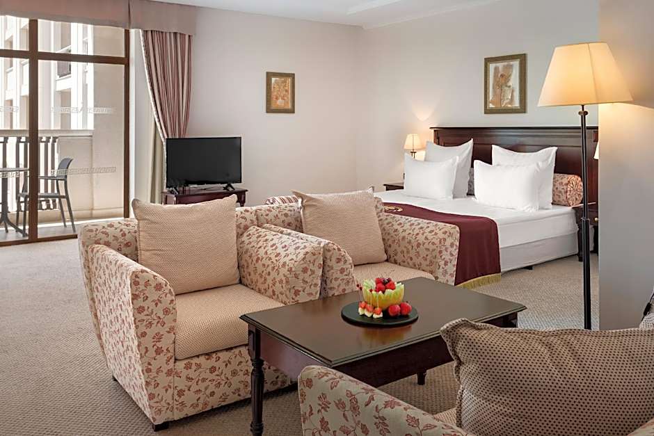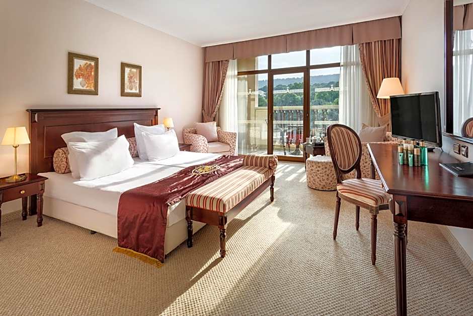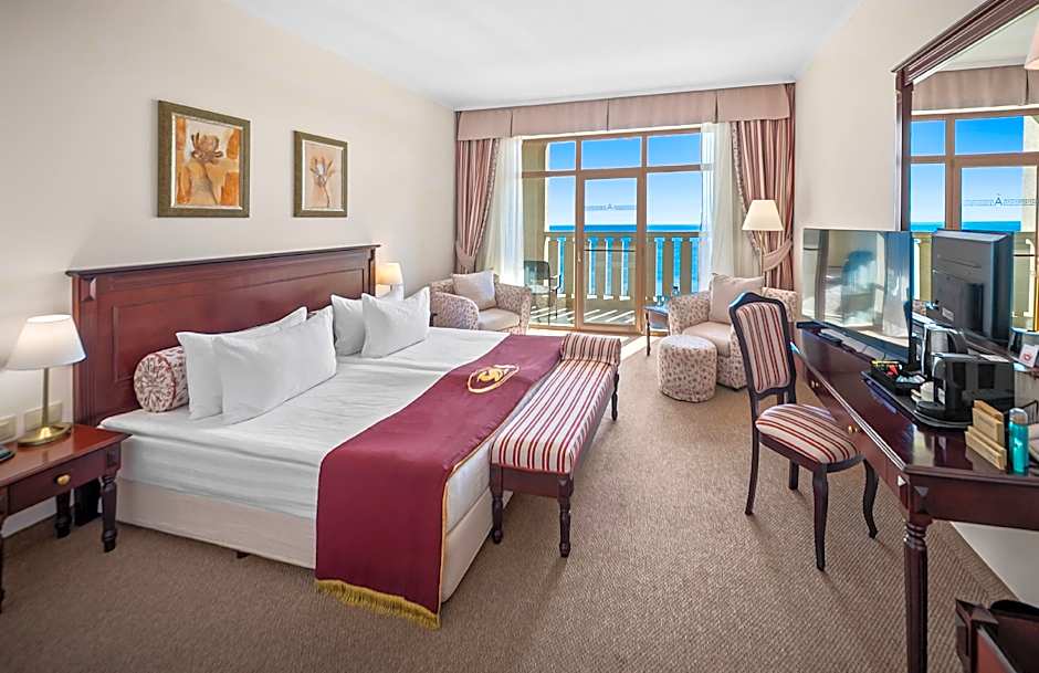 Udforsk den livlige by Zlatni Pyasatsi med udgangspunkt i Melia Grand Hermitage All Inclusive, hvor moderne luksus møder strandidyl. Uanset om du ønsker at slappe af på stranden, kaste dig ud i vandsportsaktiviteter eller nyde en foryngende spabehandling, er dette hotel det perfekte valg til din næste bulgarske ferie.