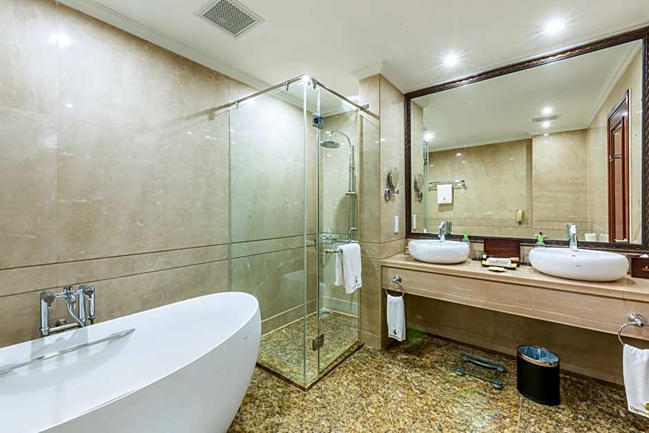 Im Vinpearl Luxury Nha Trang erwarten Sie zahlreiche großartige Annehmlichkeiten. Beginnen Sie den Tag mit einem leckeren Frühstück, das in Ihrem Aufenthalt inbegriffen ist. Nutzen Sie den privaten Strandbereich und den Außenpool – perfekt, um Sonne zu tanken und die herrliche Meeressicht zu genießen. Wer Entspannung sucht, kann sich mit Spa-Behandlungen verwöhnen lassen oder in der Sauna entspannen (beides gegen Aufpreis). Das Resort verfügt außerdem über einen Wasserpark, einen Golfplatz und einen Tennisplatz, sodass während Ihres Aufenthalts keine Langeweile aufkommt.