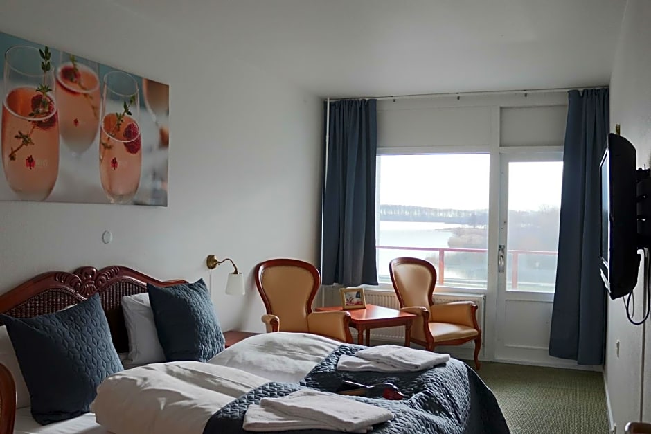 Spacious suite with private bathtub and balcony with views of Søndersø.