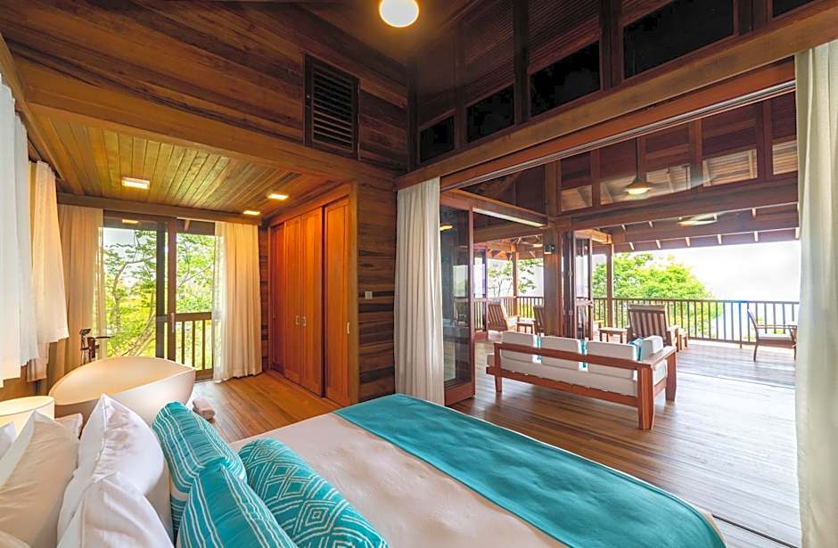 Clifftop Zabuco Villa II with Studio is secluded on the north edge of the property, complete with one bedroom and one bath, expansive living spaces, a private infinity pool, shaded hammock sofa and daybeds. Its hybrid floor plan features an in-villa studio, which can be utilized as a second bedroom or even a creative space to let your mind be inspired. Our Clifftop Zabuco II with Studio is over 3000 sq. ft. of indoor and outdoor living space, furnished with 1 King bed, 1 Full sleeper sofa in the Studio and 1 Full daybed (and optional Twin rollaway) in the air-conditioned living room.