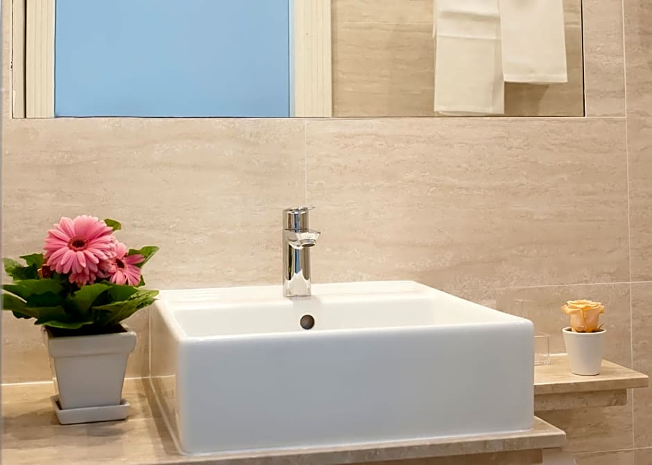 The spacious double room features air conditioning, a private entrance, a terrace with sea views as well as a private bathroom boasting a walk-in shower.