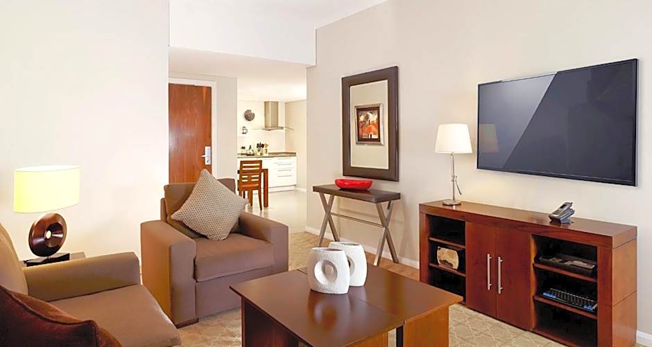 Staybridge Suites & Apartments - Citystarsissa mukavuuden juhla jatkuu perusasioita pidemmälle! Uskomattoman monipuolinen huonetyyppivalikoima majoittaa yksinmatkaajista suuriin perheisiin, joten täydellinen majapaikkasi odottaa sinua. Kaipaako pesä kahdelle? Tutustu Studio Queen Suite -sviittiin, jossa on muhkea queen-vuode, tai ehkä tyylikäs 1 Bedroom Suite antaa juuri tarvitsemasi tilan, johon kuuluu myös vuodesohva. Ryhmätapaamisiin loistava Executive Three-Bedroom Suite on todellinen helmi: siinä on kolme queen-vuodetta ja runsaasti oleskelutilaa, joten rentoutuminen ja hauskanpito käyvät vaivattomasti.