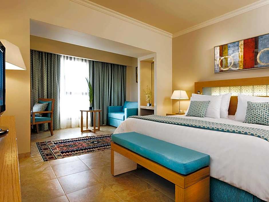 When it's time to wind down and relax, Movenpick Waterpark Resort & Spa Soma Bay offers a range of comfortable and spacious rooms to suit all needs. The Deluxe Queen Room with Pool View provides a cozy retreat with stunning views, accommodating up to two adults and one child. The Family Room with Pool View offers even more space, ensuring that everyone has a comfortable stay. For those who prefer a twin bed layout, the Classic Twin Room with Pool View or Mountain View is an excellent choice. If you're looking for a little extra luxury, the Deluxe King Suite with Sea View or the Junior King Suite provide ample space and a touch of elegance. All rooms are non-smoking to ensure a pleasant stay for all guests.