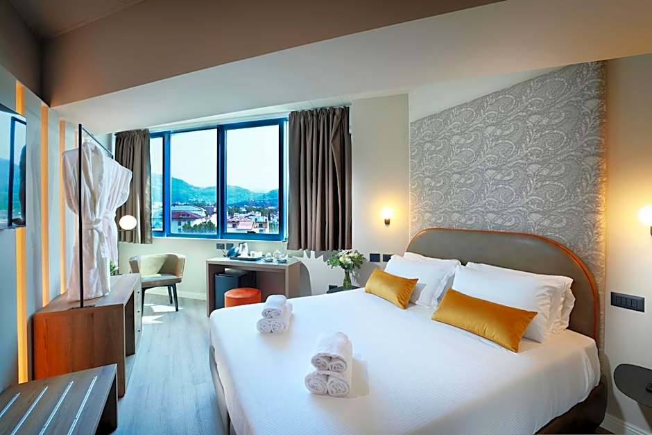 Las instalaciones incluyen aparcamiento gratuito en el establecimiento, Wi-Fi gratuito, un restaurante y un bar en el establecimiento, una terraza y habitaciones insonorizadas. Las habitaciones cuentan con aire acondicionado, balcones o vistas y opciones para no fumadores; entre los extras prácticos figuran recepción 24 horas y ascensor. La propiedad es accesible para sillas de ruedas y admite mascotas con cargos adicionales.