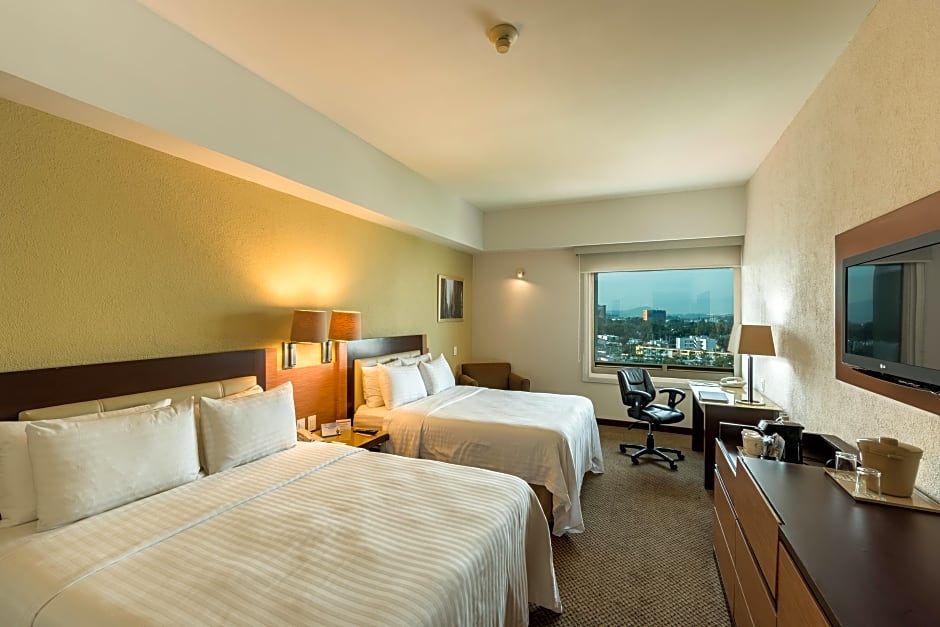 Con una amplia selección de tipos de habitación disponibles, el Holiday Inn Guadalajara Select cubre las necesidades de todo viajero. Desde amplias suites queen hasta cómodas habitaciones estándar, hay opciones para todos. Las habitaciones están decoradas con buen gusto y ofrecen todas las comodidades necesarias para garantizar una estancia confortable. Tanto si viaja solo como con su familia, encontrará alojamientos que admiten hasta tres adultos y dos niños. Relájese y descanse en las camas acogedoras, ya sean queen, king o dobles, y disfrute de un buen descanso tras un día explorando la vibrante ciudad de Guadalajara.