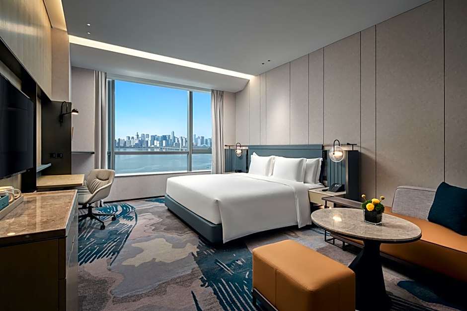 Binjiangin kaupunginosan Hangzhoun joen varrella sijaitseva tämä kimalteleva viiden tähden keidas yhdistää pelkistetyn, modernin muotoilun ja rauhoittavat vesinäkymät. Aamiainen antaa raikkaan alun päivälle, ja maksuton Wi‑Fi pitää suunnitelmat hallinnassa työn tai vapaa‑ajan aikana. Käytännöllisiä mukavuuksia on runsaasti: ilmastointi kauttaaltaan, rentouttava poreallas, keittiö joustavia aterioita varten, hissi ylempiin kerroksiin, kylpyamme ja maksuttomat kylpytuotteet — kaikki tämä kutsuvien näköalojen kehystämänä.