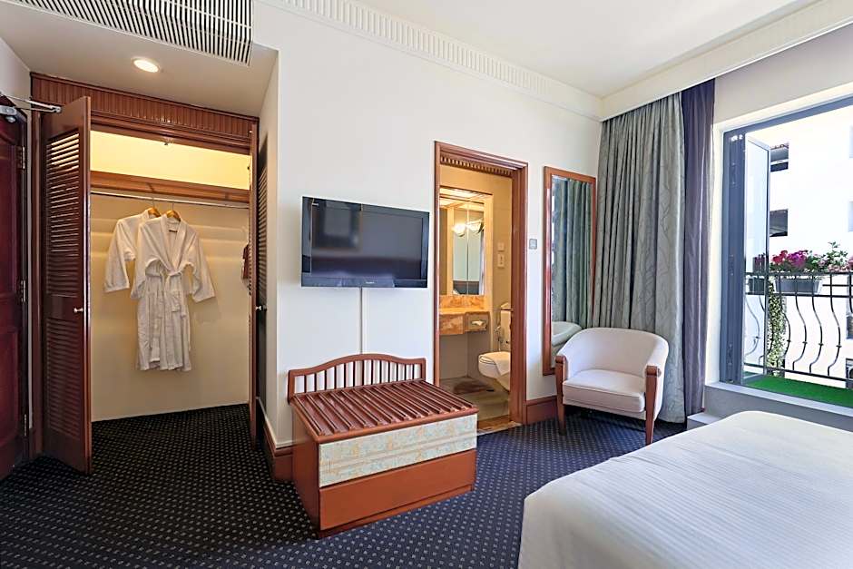 Huonevaihtoehdot vaihtelevat Standard Queenista suurempiin sviitteihin, joten ne sopivat erilaisiin matkustustyyleihin. Parvekkeellisissa deluxe-huoneissa — Deluxe, Queen, Balcony ja Deluxe, King, Balcony — on noin 323 neliöjalkaa tilaa, tarjoten mukavan paikan rentoutua päivän tutkimusten jälkeen. Vielä enemmän tilaa tarjoaa Junior Suite, noin 431 neliöjalkaa, ja Sea View Triple Room tuo rannikkotunnelman mukanaan suuremmalle seurueelle. Valikoimaa täydentävät boutique-tyyliset vaihtoehdot sekä king- tai queen-vuoteilla varustetut huoneet, jotka sopivat yksin matkustaville, pareille tai pienille ryhmille.