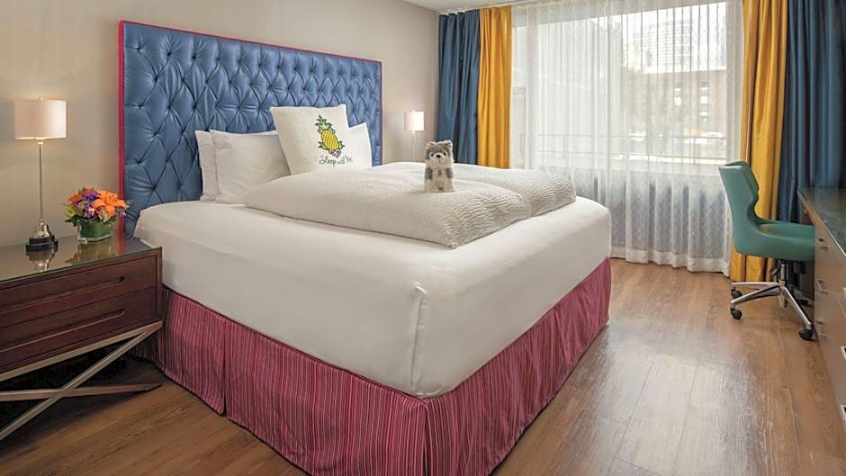 Bienvenue au Staypineapple, Hotel Rose, situé en plein cœur du centre-ville de Portland, Oregon. Cet hôtel vibrant 4 étoiles offre le parfait mélange de commodité, de style et de confort pour votre séjour. Avec son emplacement privilégié à seulement 0,4mi du centre-ville, vous aurez un accès facile à toutes les principales attractions et lieux culturels que Portland a à offrir.