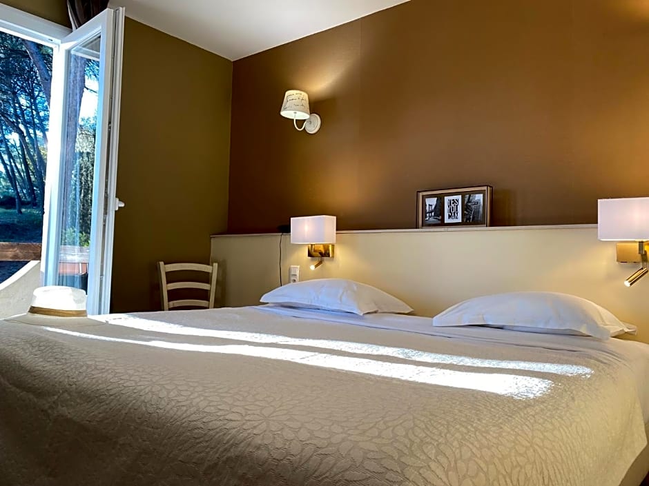 This 82 ft² single room has a terrace or balcony overlooking the pool or under the pine trees. It was renovated in 2021.