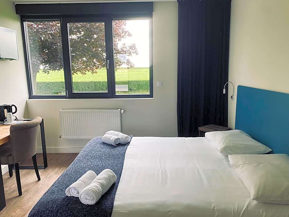 We loved staying here. The motel aspect was so convenient, as we were able to park right outside our room. The room was freshly decorated, warm and peaceful. There were great views of the aerodrome through the window, and a fantastic sunrise in the morning. The sheets were beautifully clean and crisp. Comfortable bed and pillows. The staff we met were incredibly charming and welcoming and went out of their way to make us feel at home. The evening meal was delicious. We will definitely stay there again if we get the chance, and we happily recommend it to anyone. So convenient for the channel tunnel - it took us just over an hour to reach there after departing the hotel.