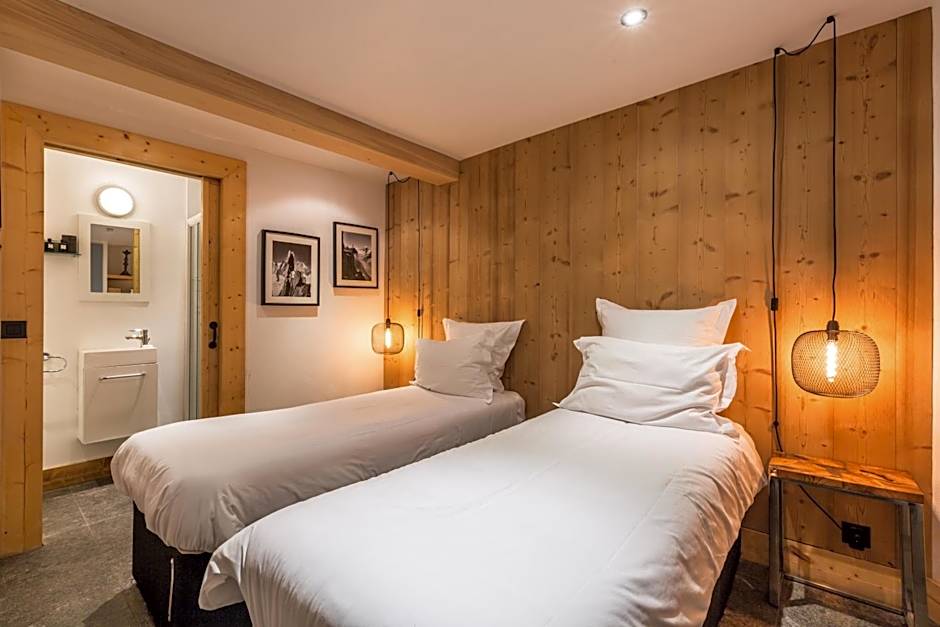 This three-story chalet offers a refined and bright alpine setting, enhanced by authentic natural materials. It can accommodate up to 12 people with 5 bedrooms (choice of 1 double bed or 2 single beds) and 5 bathrooms, plus an additional bedroom with 2 single beds and a bathroom/WC. The large living room with open kitchen opens onto a panoramic terrace facing Mont Blanc, equipped with a private jacuzzi.