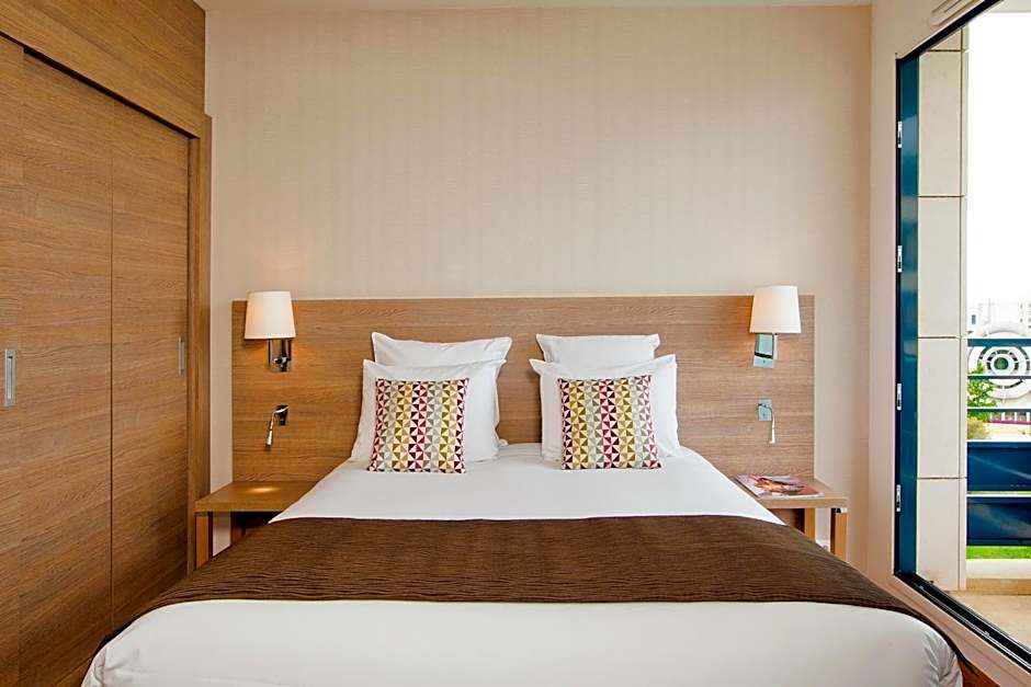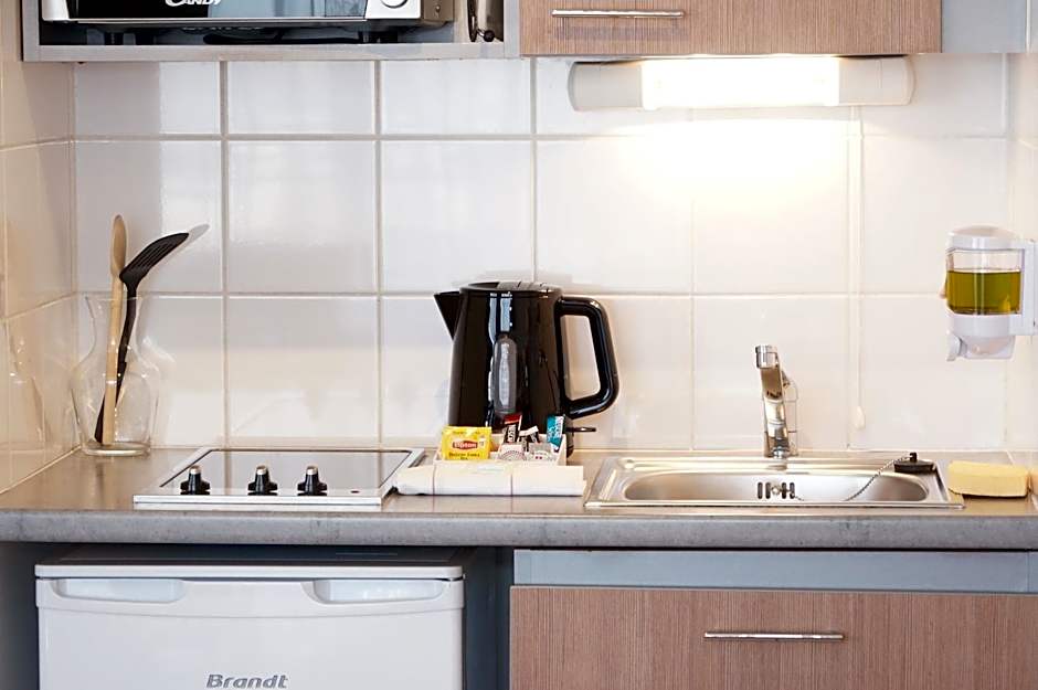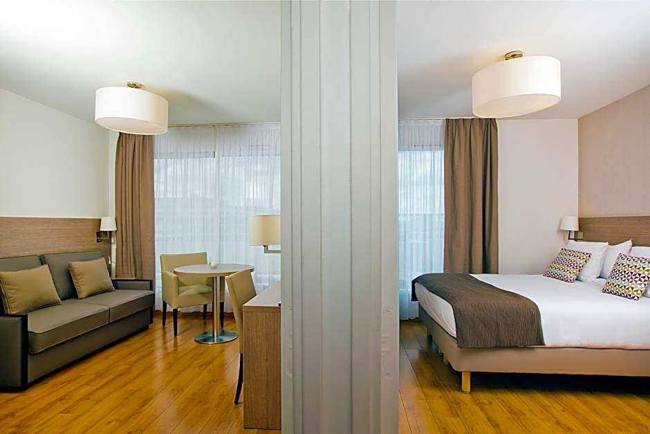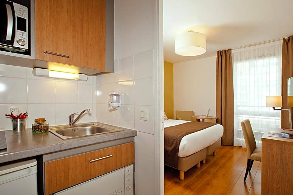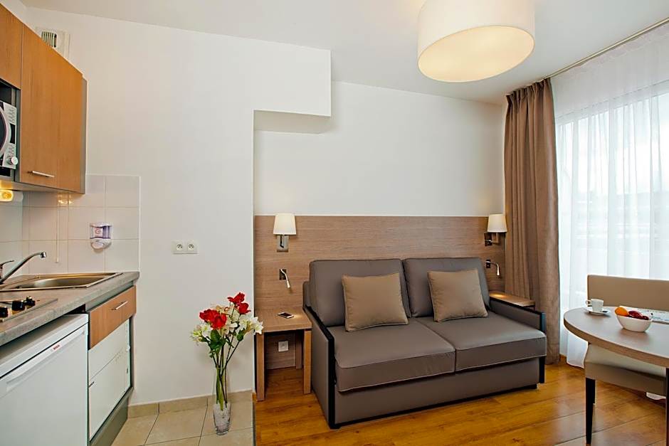 The location of these apartments is excellent you can get everywhere in Paris in 30m by car. You have everything in the neighborhood, boulangerie, supermarkets, pharmacies a park etc. Parking is paid but relatively easy. The apartments are fairly equipped but small. Overall a very good value for money if you want to spend a couple of days in Paris. The reception team is very polite and helpful.